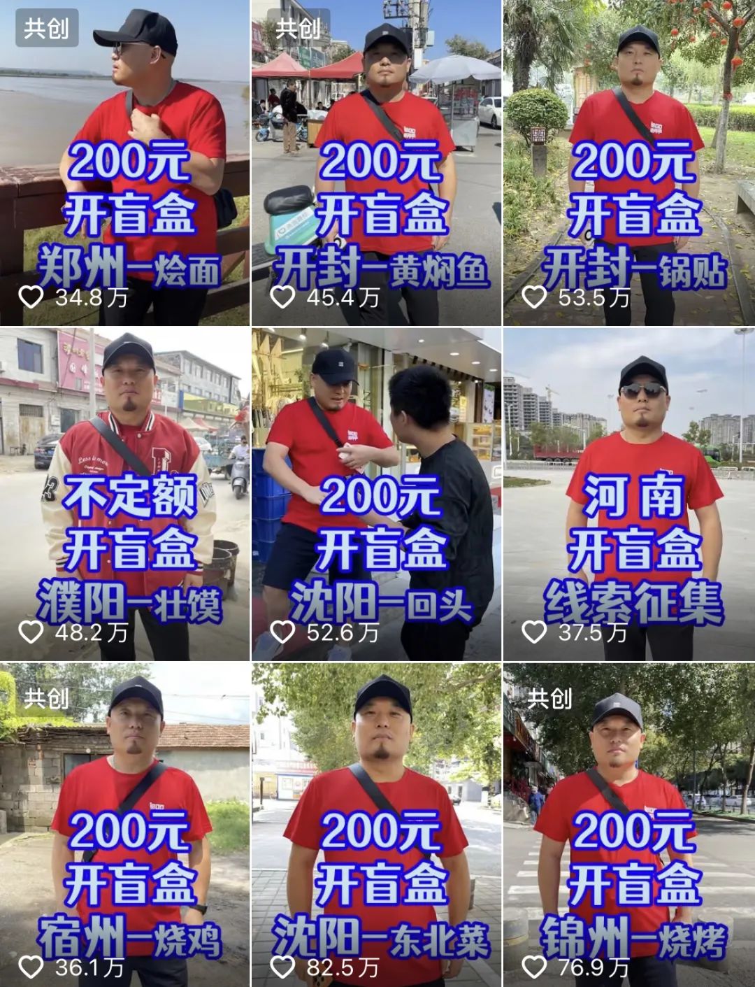 去年,@二百者也 开启“探店盲盒”玩法,通过200元定额挑战的玩法,打卡全国各地的美食店铺,与商家共创,掀起一股“店家上啥我吃啥”的挑战风潮。