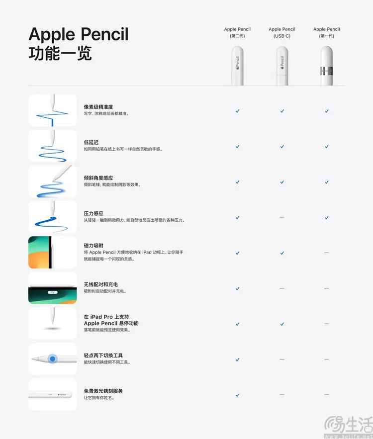 在具体的功能方面,Apple Pencil(USB-C)相比第二代Apple Pencil仅仅只是少了无线充电、压力感应,以及内置点触传感器,它的功能甚至要比初代Apple Pencil更丰富一点。但特别值得一提的是,在此基础上,它的价格却是到目前为止整个Apple Pencil体系内最低的。