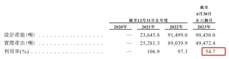 在行业产能过剩的影响下,龙蟠科技只能主动调低公司产能利用率。数据显示,2021年公司产能利用率还高达106.9%,到2023年上半年公司产能利用率下滑至54.7%。