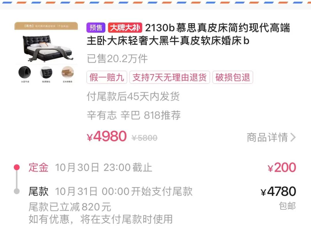让我们把时间拉回到 10 月 21 日,辛巴首战双十一,一张慕思床垫销售额就破了 10 个亿。