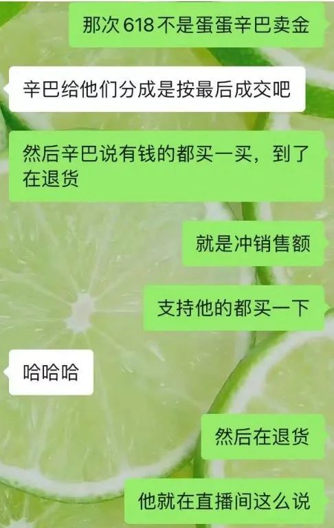 这种行为在直播带货界已经不是啥新鲜事了。之前另一位网红 @太原老葛 爆料辛巴 618 成绩都是刷的,怕自己输了,刷单刷了 50 亿。
