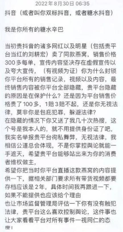 那次他发长文举报刘畊宏夫妇卖同款燕窝假货,大骂抖音双标包庇。