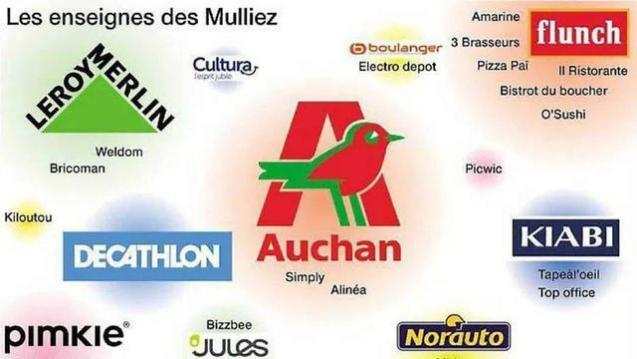 除了欧尚和迪卡侬,建材超市乐华梅兰(Leroy Merlin)、汽车修理连锁店Norauto、服装超市凯家衣Kiabi、平价连锁餐厅Flunch、比萨连锁店Pizza pai、家电零售商Boulanger、设备租赁公司Kiloutou等等都是穆里耶的家族企业。