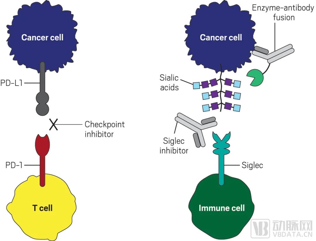 在肿瘤微环境中,肿瘤的唾液酸化有助于建立免疫抑制环境,并通过参与肿瘤浸润免疫细胞上表达的免疫调节性免疫球蛋白样凝集素(Siglec受体)来抑制抗肿瘤免疫反应。Palleon采取的糖免疫检查点轴——唾液酸聚糖-Siglec轴是一种新的免疫检查点,可以作为靶点来驱动先天性和适应性抗肿瘤免疫。