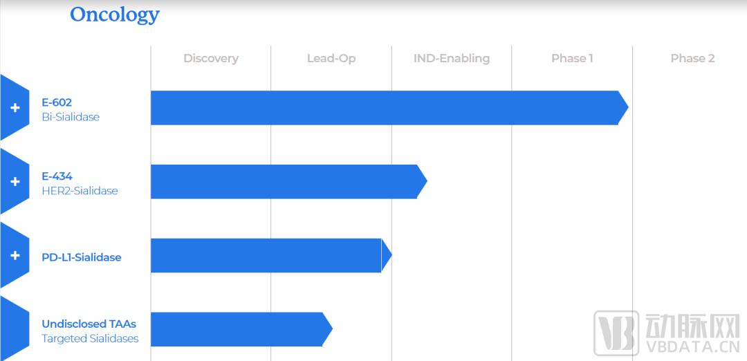 E-602是Palleon基于EAGLE技术平台开发的一款潜在First-in-class唾液酸酶融合蛋白,将唾液酸酶(Neu2)与人类抗体的Fc片段相融合,可以通过降解肿瘤和免疫细胞表面具有免疫一直作用的唾液聚糖,恢复抗癌免疫力。