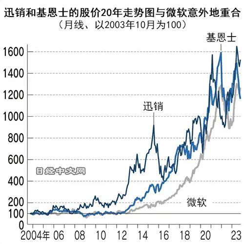 观察迅销20年来的股价走势图,出乎意料地与美国微软重合。而且还与在传感器领域获得高收益的日本基恩士如出一辙。这3家企业的营业收入在20年内增至7~10倍。虽然在日本看来是惊人的成长,但是以不输给世界的速度拼命奋斗的只有这2家。