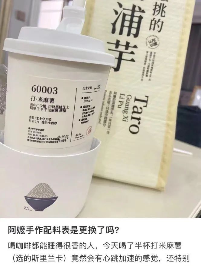 阿嬷手作的标签右边是饮品的“出生证明”。(图/@南宁纹绣眉姐姐)