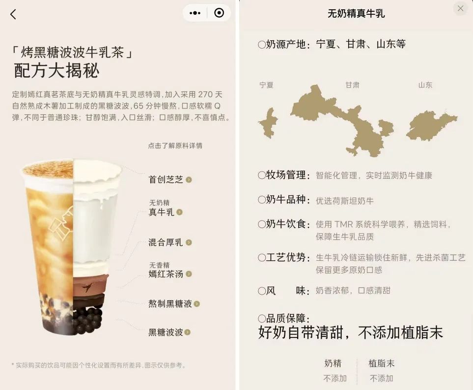 配方中公布的成分都附有详细的产地溯源信息。(图/喜茶GO)