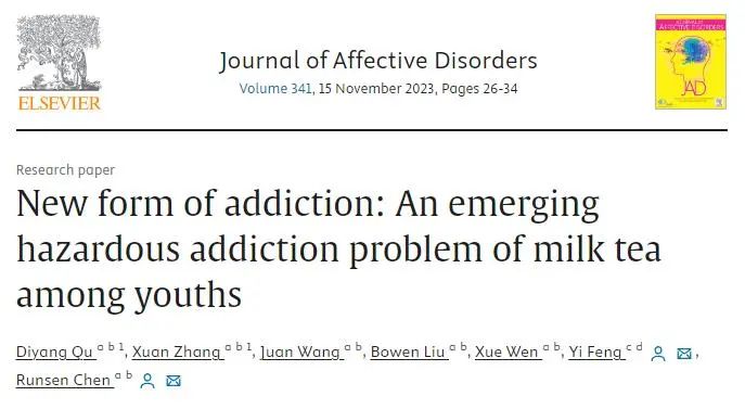 然而,最近有研究显示,奶茶喝多了,可能会高兴不起来。清华大学和中央财经大学的研究人员分析了我国5281名大学生的奶茶饮用习惯,发现经常喝奶茶可能会导致成瘾,增加抑郁、焦虑的风险,其中女性、年龄较小与奶茶成瘾程度显著相关。