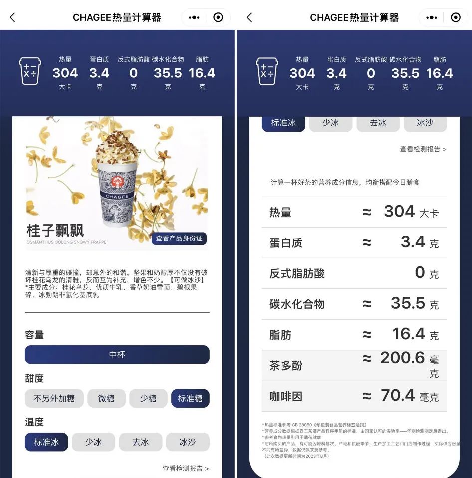 实际上,喜茶不是第一家公开配方和营养成分的茶饮品牌。今年9月,“霸王茶姬”推出“热量计算器”,消费者可在手机上查询到37种饮品的产品热量、营养成分和第三方检测报告。