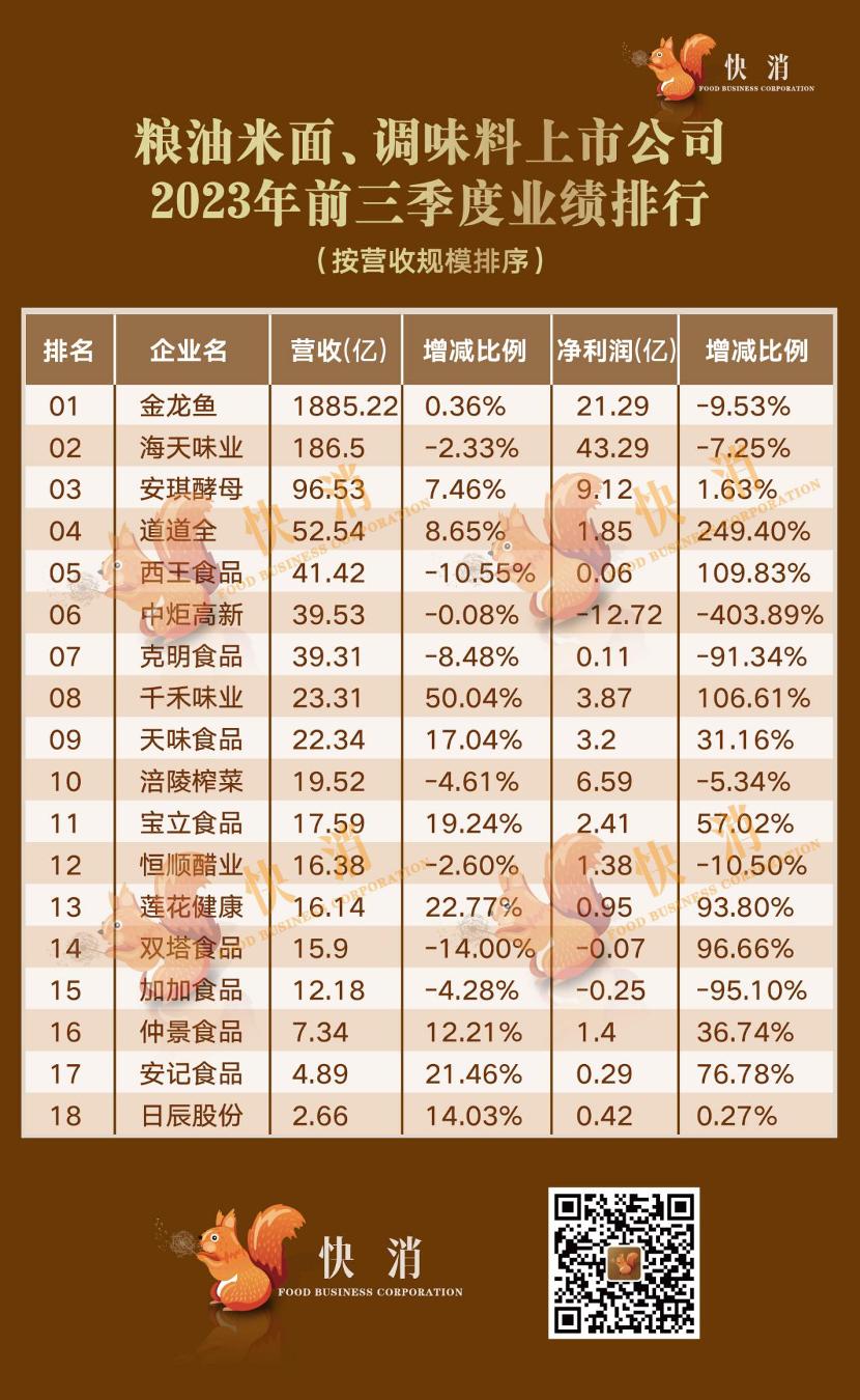 从体量来看,除了金龙鱼一家独大,伊利前三季度的营收已逼近千亿,安井首次在前三季度突破百亿,破百亿的有7家公司。赚得最多的公司还是伊利,前三季度净利润临近百亿,海天勉强维持第二,但净利润已下滑7.25%至43.29亿元,有被双汇超越的风险。