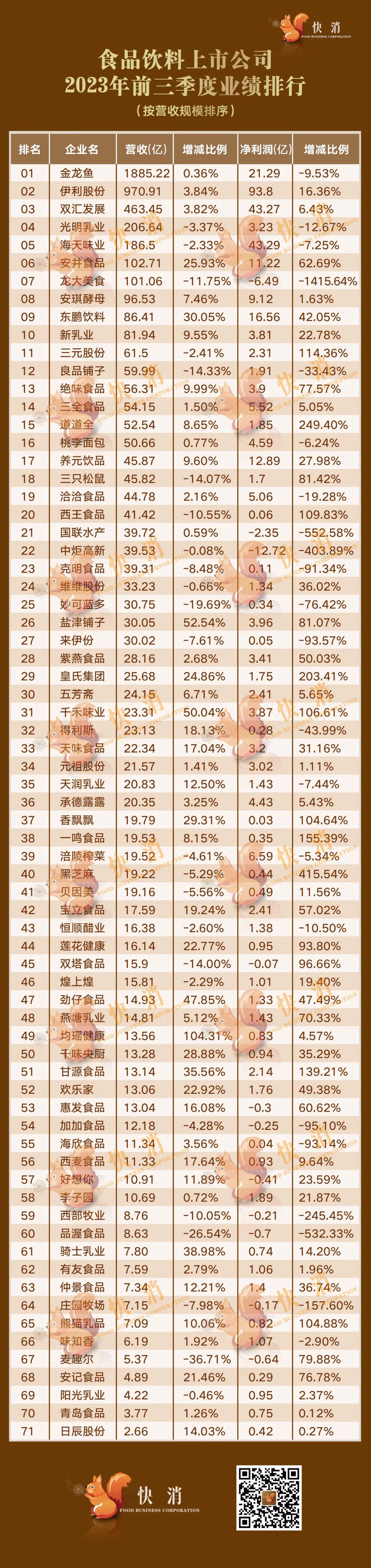 71家A股食品饮料公司三季报榜单出炉:谁在领跑,谁掉队了?
