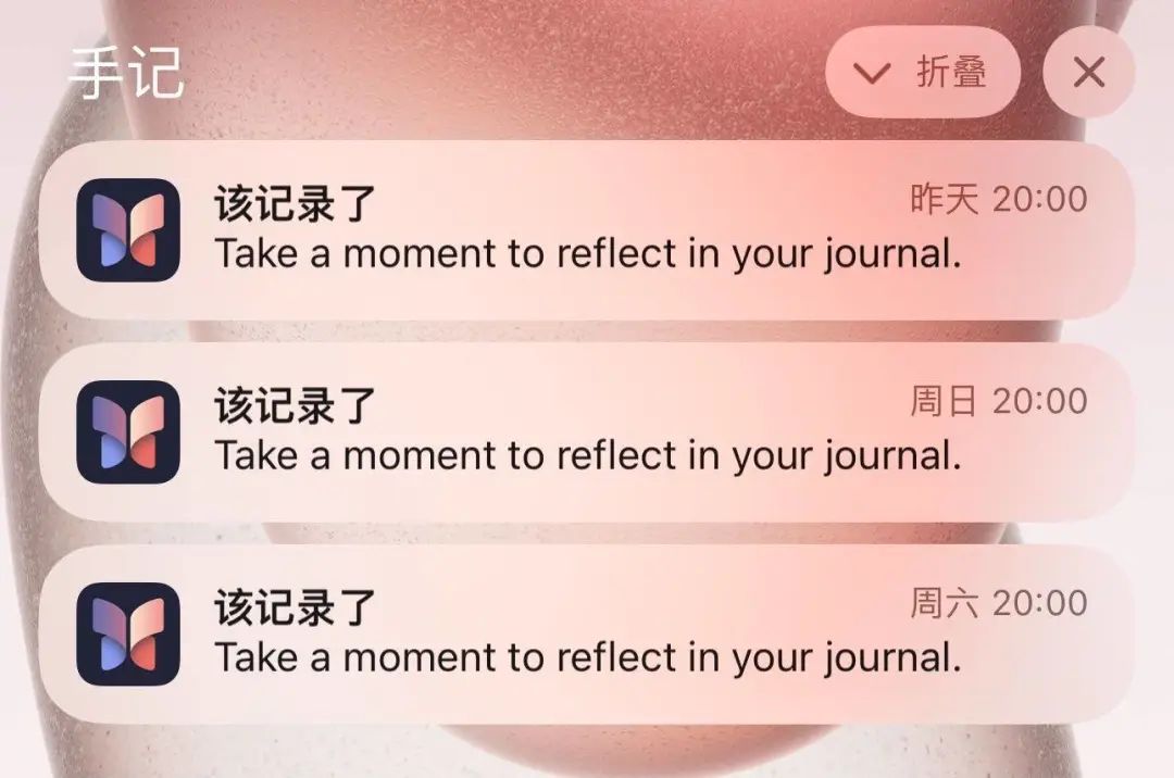 今年 6 月,苹果在开发者大会官宣了一款全新的原生 app:Journal(手记)。顾名思义,这是一本以手机为纸笔的数字日记。
