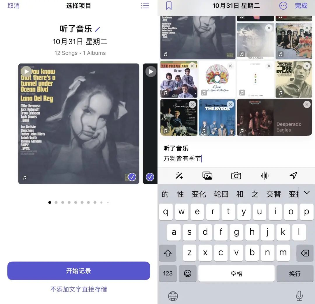 轻量的 Journal 同样很适合随手使用,与退化的记忆能力相抗争。照片、视频、音乐等内容的集合,让我们重温了某些珍贵时刻,就像苹果相册里的「回忆」功能,为平平无奇的生活塑造了仪式感。