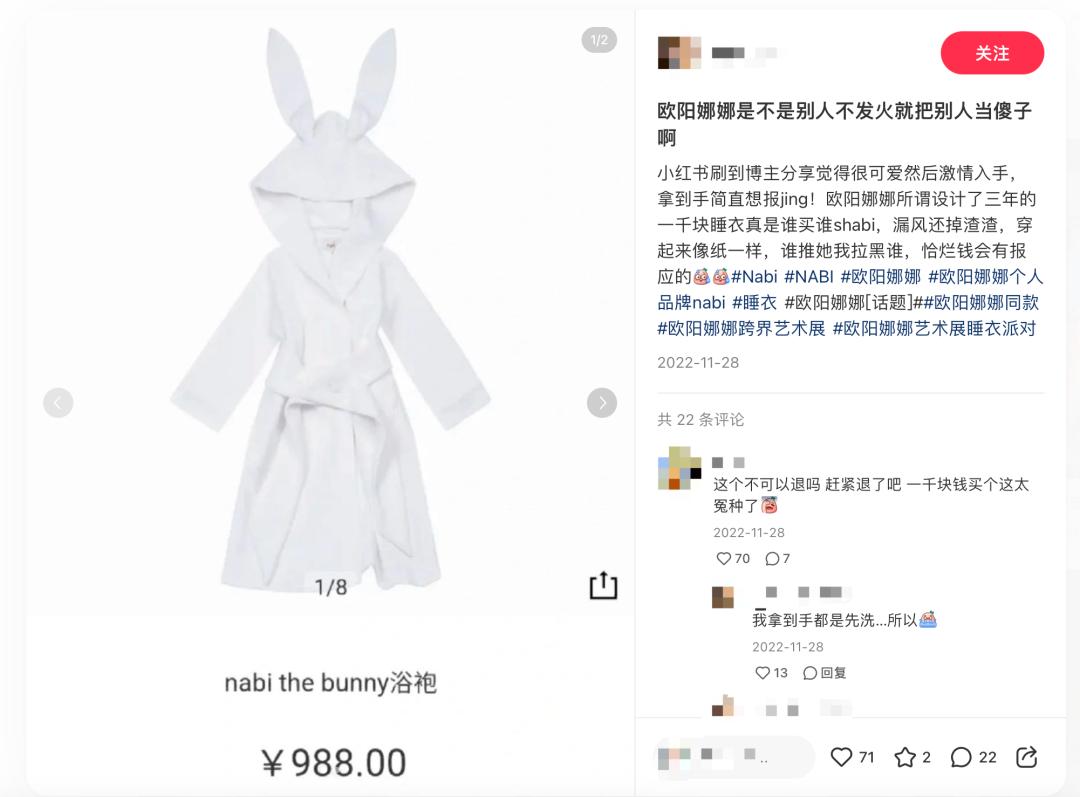 但优势的反面也意味着更大的争议,不少明星的潮牌都因为价格、质量、售后服务等问题被认为是割韭菜,甚至还会反噬艺人本身的口碑。之前欧阳娜娜推出的个人品牌nabi,就被质疑价格太高、与质量不符合。但即便没有高溢价,很多明星的个人品牌在推出之即也会被贴上了“割韭菜”、“质量堪忧”等标签。
