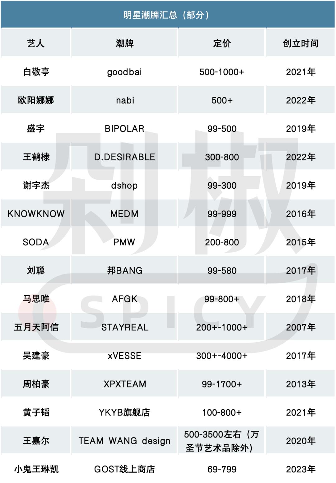 PUK入局时,明星潮牌赛道已经处于“供大于求”的内卷状态。不论是薛之谦、白敬亭等主流艺人,还是黄子韬、王鹤棣等偶像明星,很多艺人都推出了个人品牌。尤其是近几年逐渐走进大众视野中的说唱歌手,做潮牌的比例更高,马思唯、KNOWKNOW等rapper都在经营各自的服装品牌,而且很多明星的个人品牌价格在99~499之间。