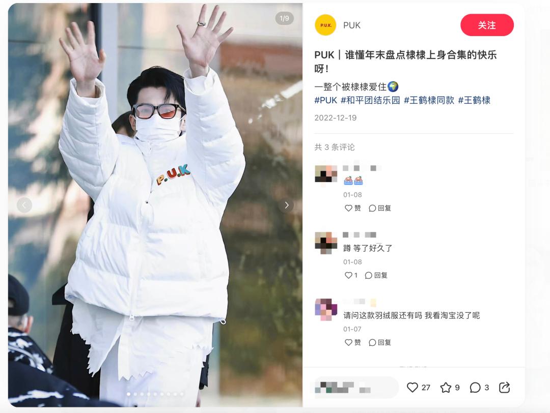 与大多数明星潮牌一样,PUK的出圈离不开明星效应带来的正反馈——强曝光。