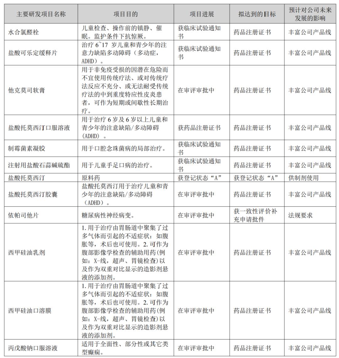 另一边则进行品类延伸,重点研发布局治疗类药物,包括呼吸、消化以及精神类治疗类药物。