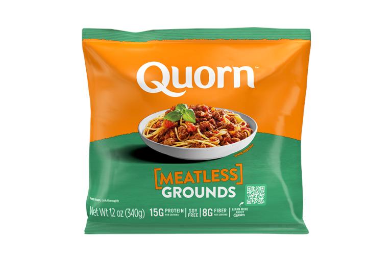 Quorn曾推出无肉牛肉粒,主要成分为88%的真菌蛋白、蛋清、豌豆纤维、天然焦糖烤大麦麦芽提取物、氯化钙和醋酸钙(固化剂),可用于搭配炸玉米饼或意大利面等。