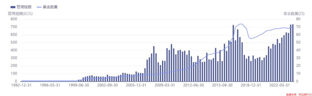 作为“老十家”公募基金公司之一,长盛基金错失了先发优势,这些年发展规模明显掉队。截至2023年9月末,其公募管理规模为739亿元,是“老十家”中唯一不到千亿的机构,处于市场中游位置。