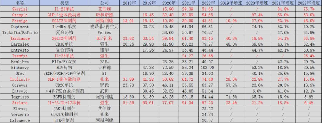 哪些药物有成为药王的潜质呢?从药物增速这项数据中或许能够给出答案。