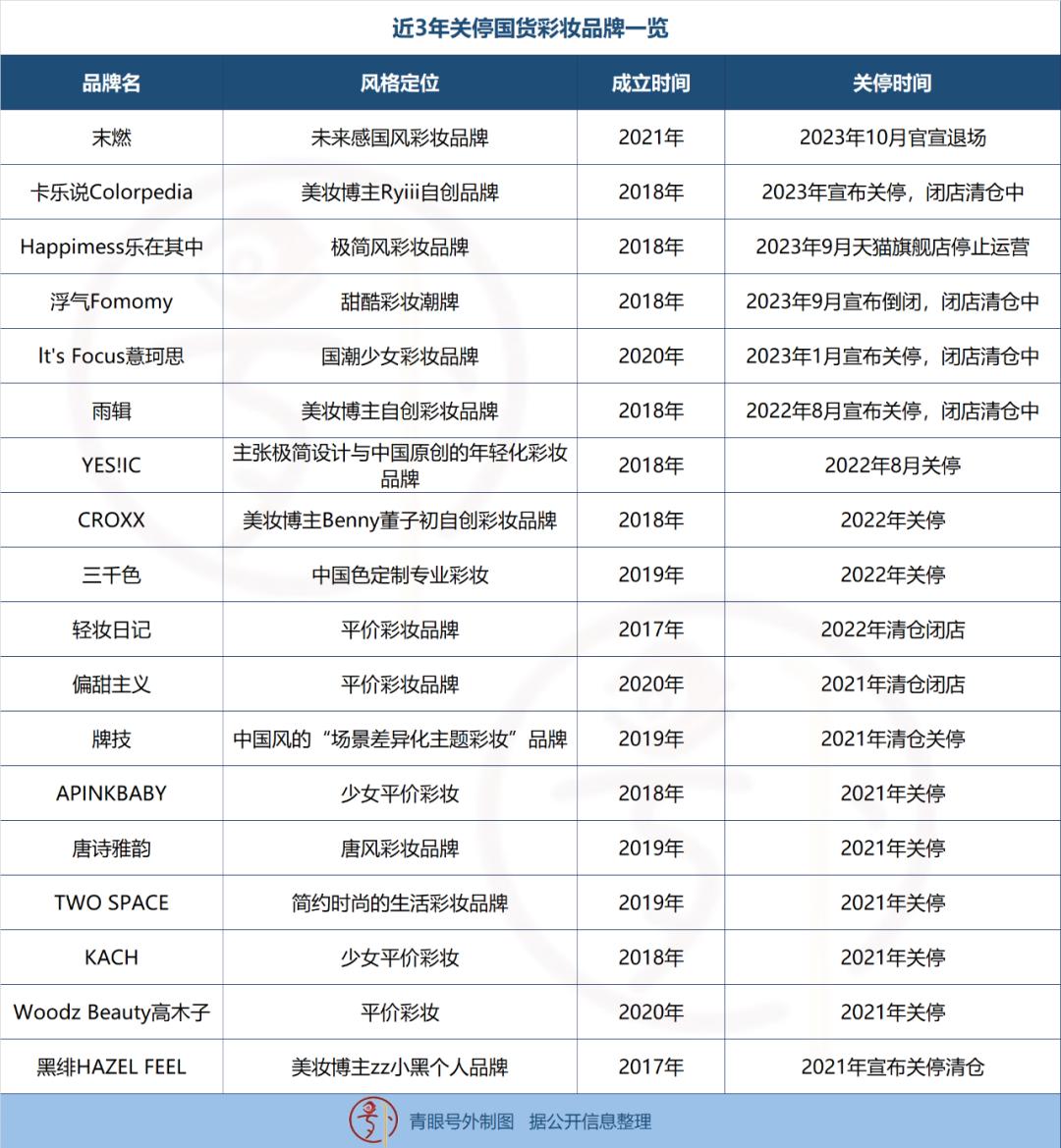 从近三年的情况看,疫情冲击,投融资遇冷,渠道红利消退等多重因素叠加,让新锐美妆品牌经历了一场大洗牌,彩妆品牌也一直都是美妆品牌关停潮中的主力军。