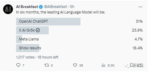 而大部分吃瓜网友,对马老板号称能「探究这个世界真相的」AI助手,还是相当看好的,虽然没有人用过,但是已经有1/4的网友相信,它半年内就会成为最领先的大预言模型。
