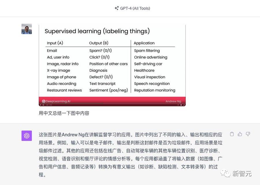 天津师范大学副教授Wang Shuyi表示,GPT-4 (All Tools)打通各个模式之后,拿来当助教非常合适。你可以让它识别幻灯帮你讲解,还能立即给你写出程序代码的例子来。