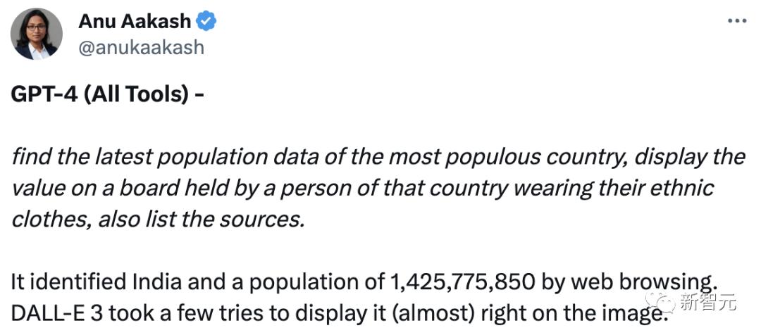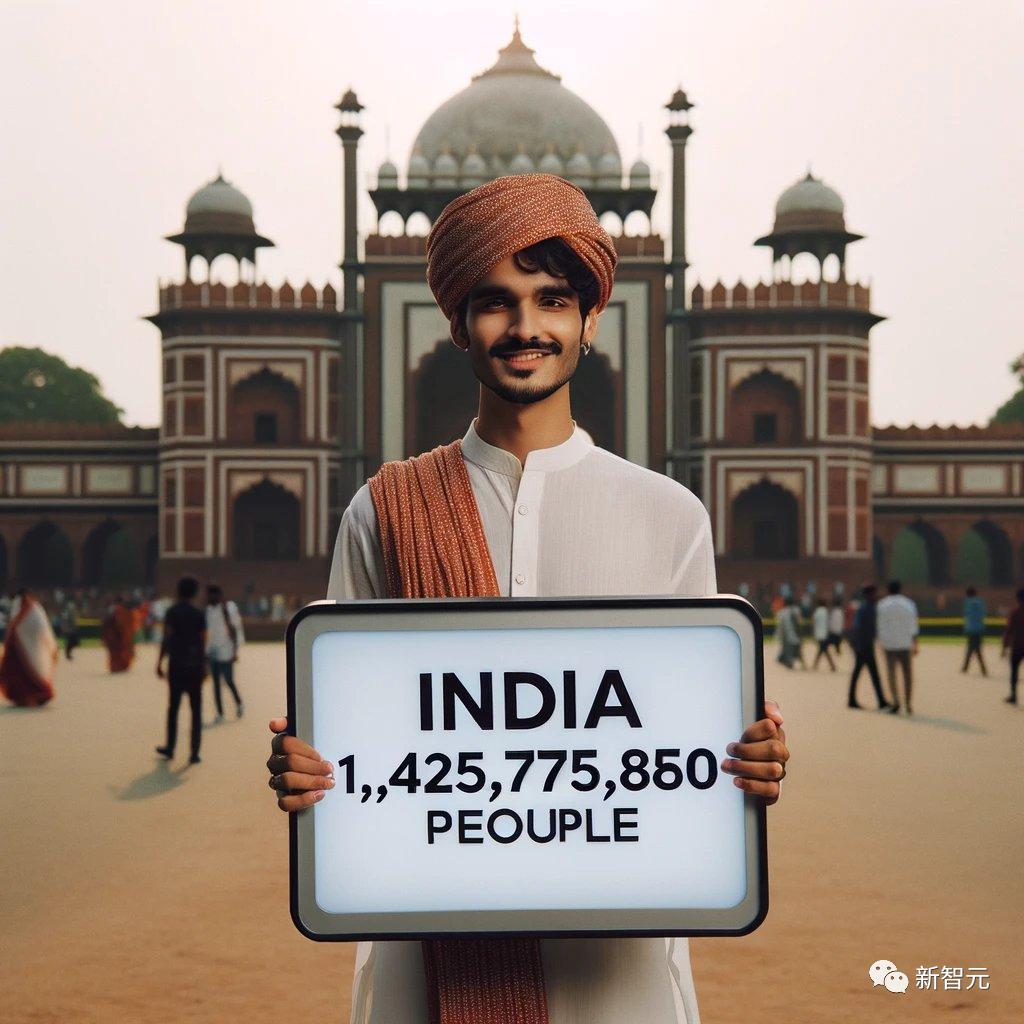 然后,ChatGPT通过「网络浏览」确定了印度和1,425,775,850的人口。不过,DALL·E 3尝试了几次才(几乎)在图像上显示字母。