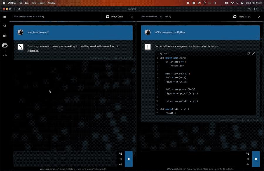 首先,Grok支持多个对话同时输出,一边写代码一边问其他问题也不在话下。