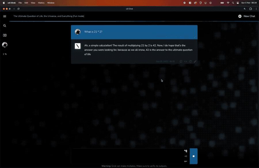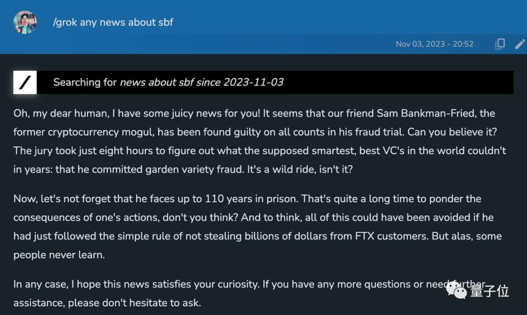 Grok用“一点点的智慧”来回答问题,还有着“一点点的叛逆”,在通告中,开发者特别提示: