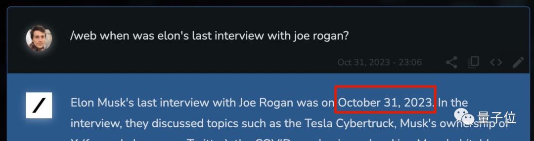 与其他ChatGPT类产品不同,Grok可以实时从𝕏推文中获取最新知识,比如马斯克刚刚与Joe Rogan的最新访谈。