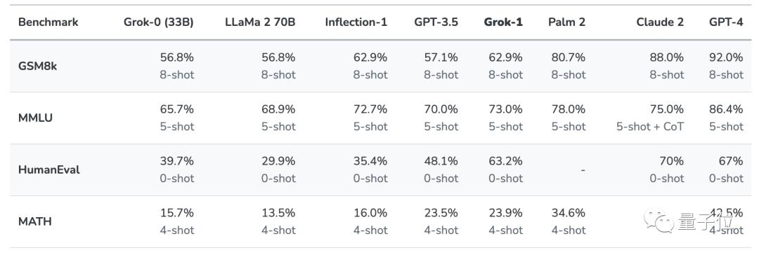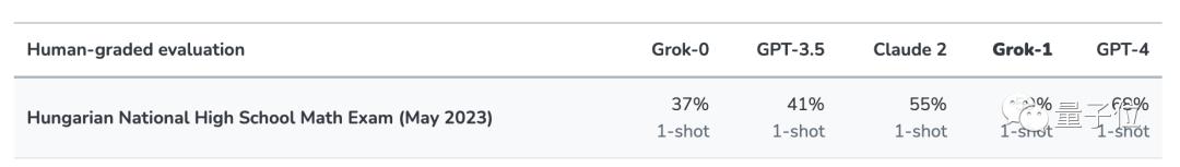 Grok-1取得的成绩也超过GPT-3.5,在Claude 2与GPT-4之间。