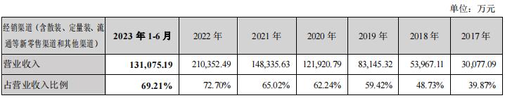 近几年,此类零食量贩店带动了盐津铺子经销渠道业绩增长。2017年至2022年,盐津铺子经销渠道营收从3.01亿元上升至21.04亿元,在总营收的占比从39.87%上升至72.70%。