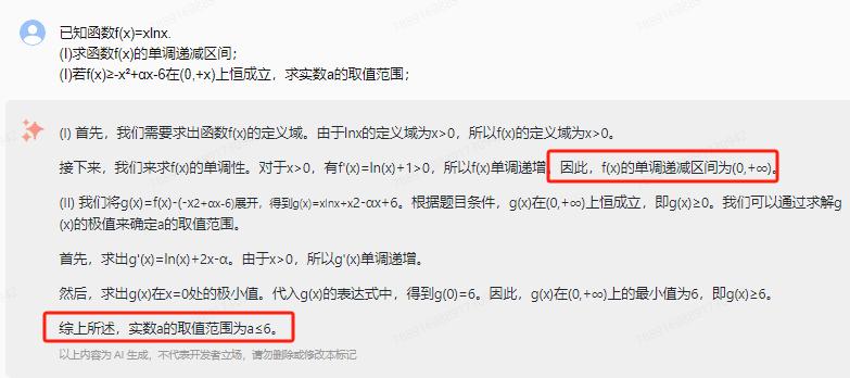 我们将难度升级,在作业帮中选取一道高中常见数学函数题,并要求智谱AI只回答前两问。但在这两问中,智谱AI给出的答案均错误。两道数学逻辑题的接连出错,和智谱AI所宣传的ChatGLM系列模型能够解决复杂推理问题明显矛盾。