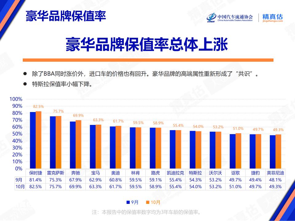 根据中国汽车流通协会发布的《2023年10月中国汽车保值率研究报告》,豪华车在10月份的保值率有所上涨,其中保时捷10月份的三年车龄保值率高达82.5%,稳居豪华品牌阵营第一位,旗下Macan的三年保值率高达75.96%。