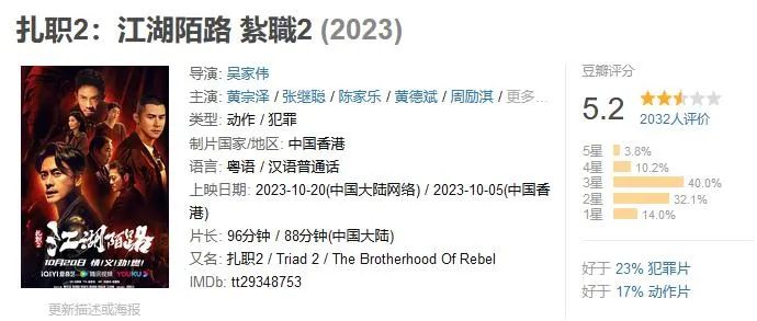 但客观来说,这些题材的港片对于审美滞后的内地网络电影观众来说还是不够“好看”,因此在市场反馈、讨论度上都没有明显起色。