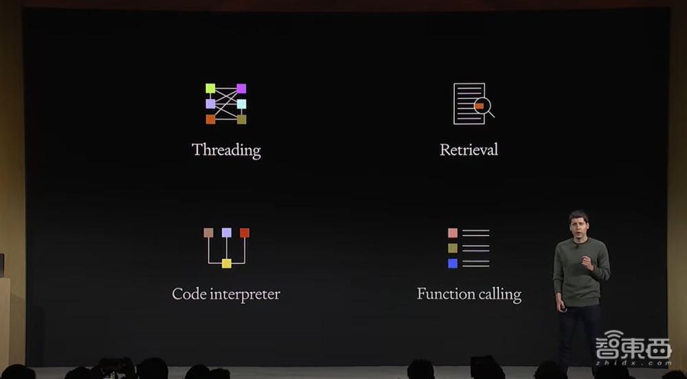 Assistants API引入的一个关键更新是提供持久且无限长的线程(Threading),允许开发人员将线程状态管理移交给OpenAI,并解决上下文窗口长度约束的问题。Assistants API还提供三款新的工具,分别是代码解释器(Code interpreter)、检索(Retrieval)以及函数调用(Function calling)。