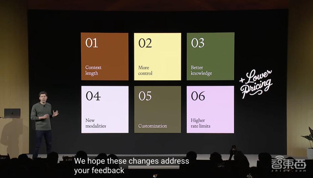 OpenAI宣布推出了最新的、更聪明的AI模型GPT-4 Turbo,阿尔特曼介绍了六大更新点。