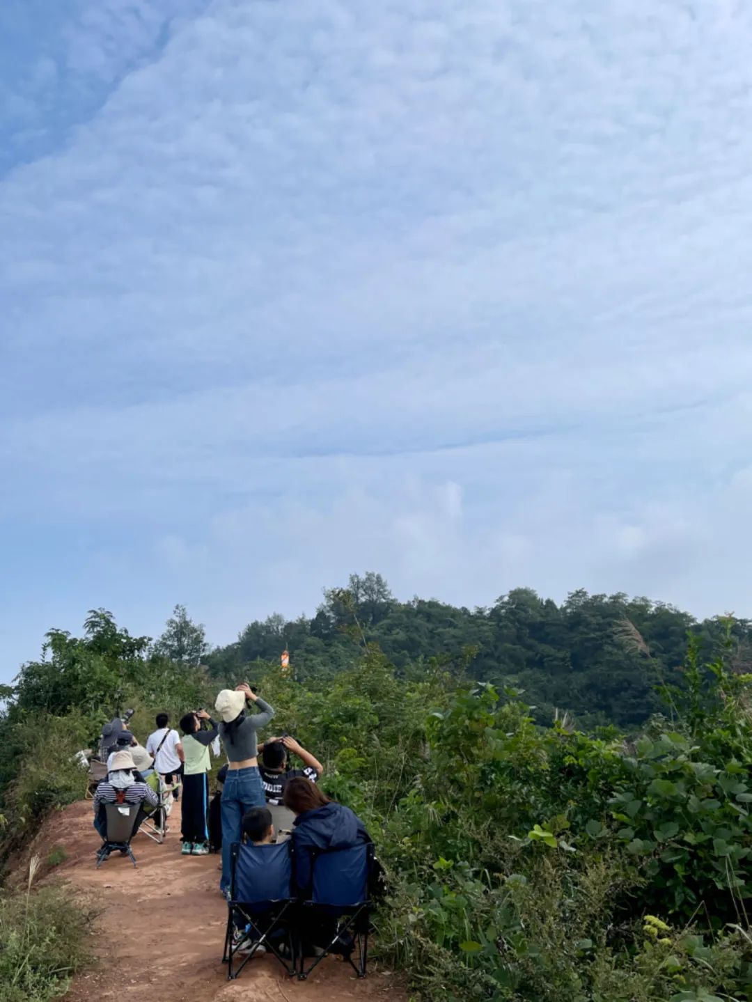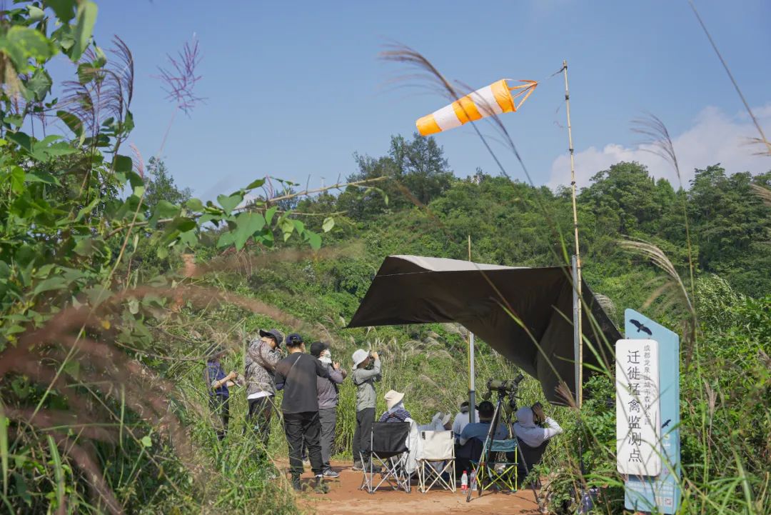 在龙泉山迁徙猛禽监测点,志愿者们面向北方而坐,等待秋迁猛禽从北方南下。当猛禽越过山头时,他们纷纷举起望远镜和相机,为迁徙猛禽留下影像记录、时间、数量等信息。(图/鸮奉)