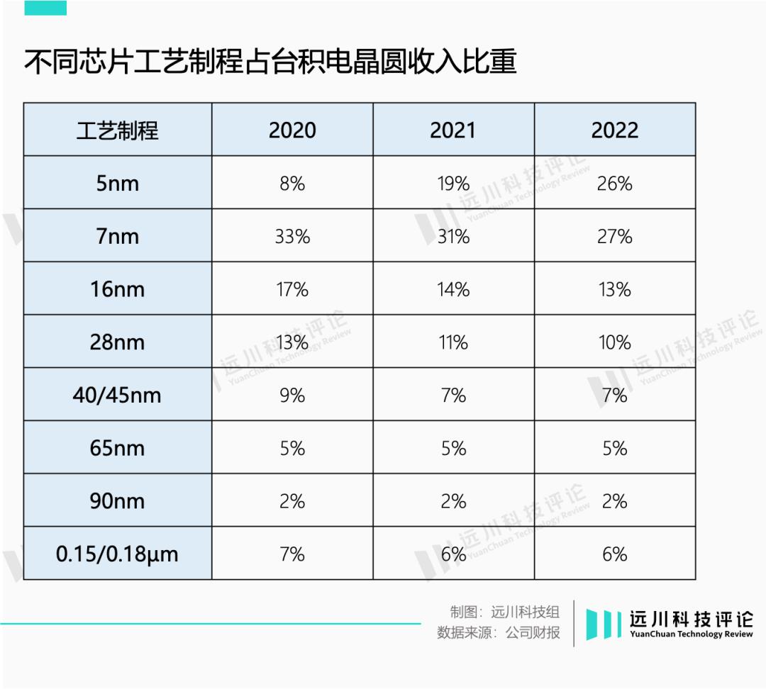 从台积电的年报中也可以发现,从2020-2022年,5nm份额逐年增加,但16nm以上的产品占比却变化不大。理论上的“末位淘汰”逻辑并未发生,真正遭到挤兑的是上一代冠军:7nm。