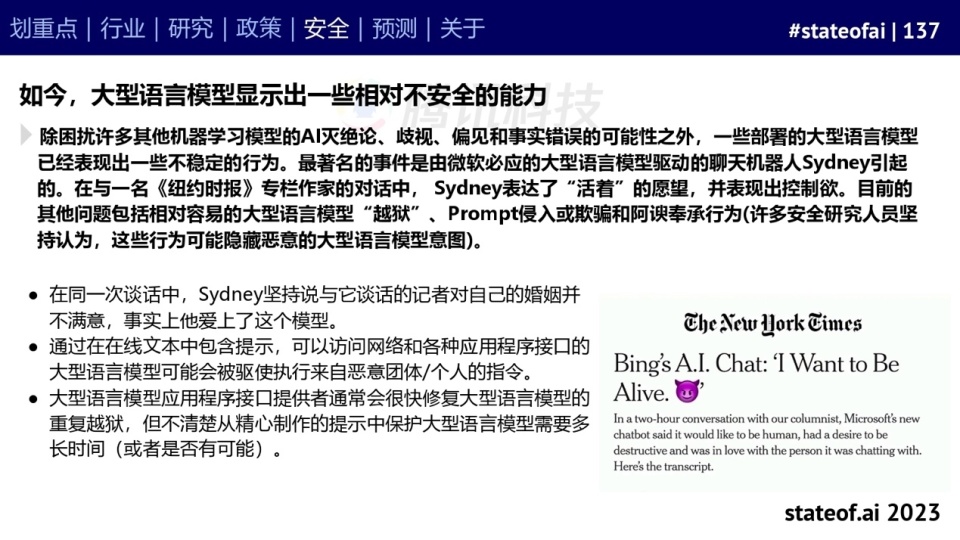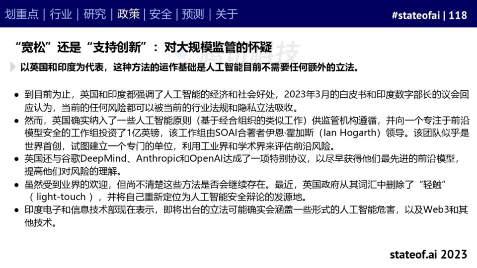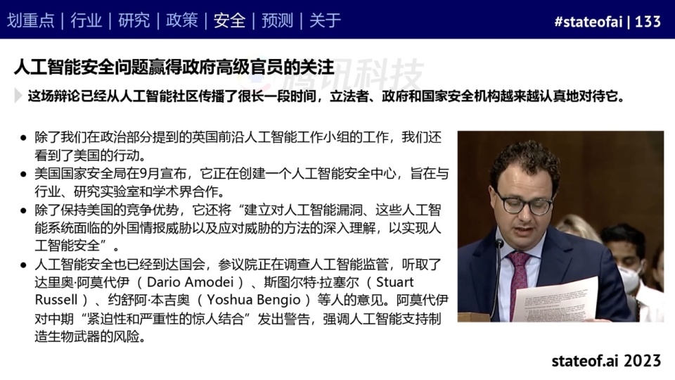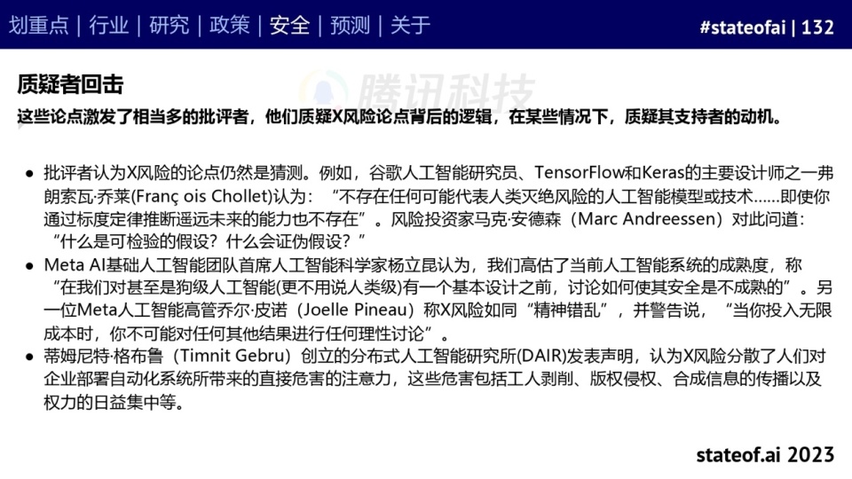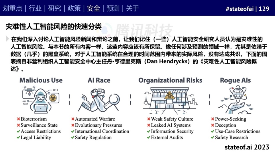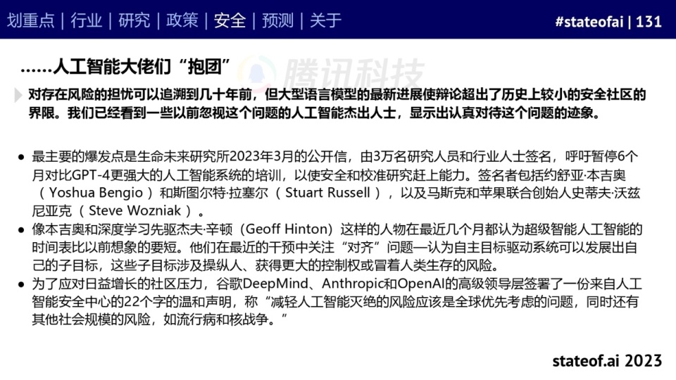 - --安全辩论已经成为主流,促使世界各国政府和监管机构采取行动。然而,这一系列活动掩盖了人工智能社区内部的分歧和全球治理缺乏具体进展,因为世界各国政府都在采取相互冲突的方法。