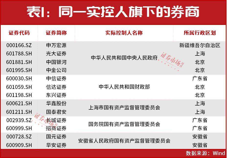 而Wind显示,上市券商中拥有共同实控人的还有申万宏源、光大证券、中国银河、中金公司,以及中信证券、信达证券、东兴证券等(见表1)。