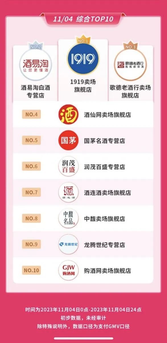 今年618,1919发布战报称1919天猫GMV2.48亿,包揽天猫食品行业第一、酒水类目第一;1919抖音GMV2.03亿、1919快手GMV1.26亿(店铺合并成交),荣获抖音、快手酒水行业双冠王。