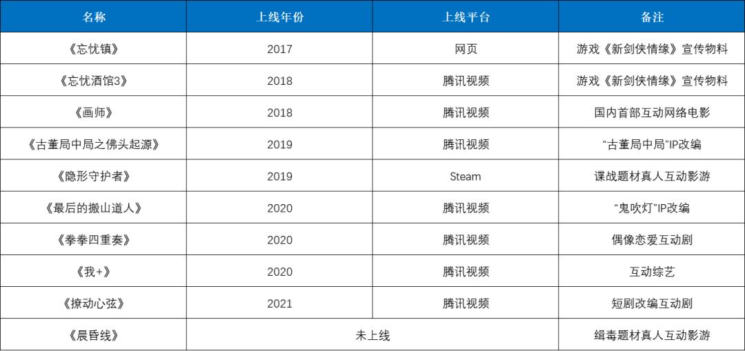 自 2017 年开始,腾讯依托腾讯视频平台上线了多款互动剧集,题材集中在悬疑和女性向甜宠两个方向。2019 年经腾讯极光计划扶持而诞生的《隐形守护者》大概是《完!美!》之前国内人气最高的互动影游,登顶当年 Steam 国产游戏销量榜,此后国内的互动影游赛道一度沉寂,直到《完!美!》出现,近期互动影游概念股股价集体上涨,预计将有更多玩家进入这一赛道。