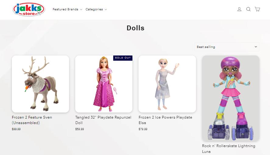 Jakks的娃娃和装扮玩具,主要有迪士尼冰雪奇缘、迪士尼公主等IP。