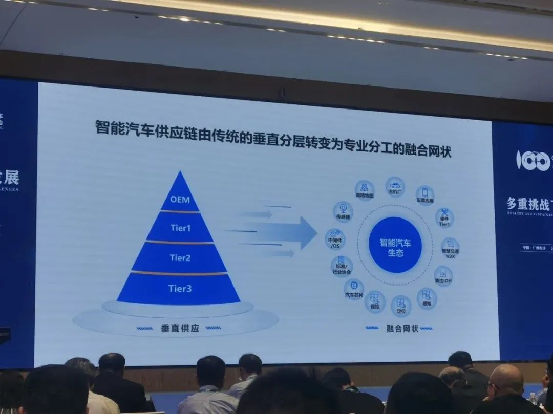 大会期间,不少嘉宾都提到了整车和零部件关系的变化。在电动化、智能化的新赛道上,无论是整车企业,还是不同层级的零部件公司都在寻找自己的定位。过去从上到下的链状关系,如今演变成了一种网状共生的关系。