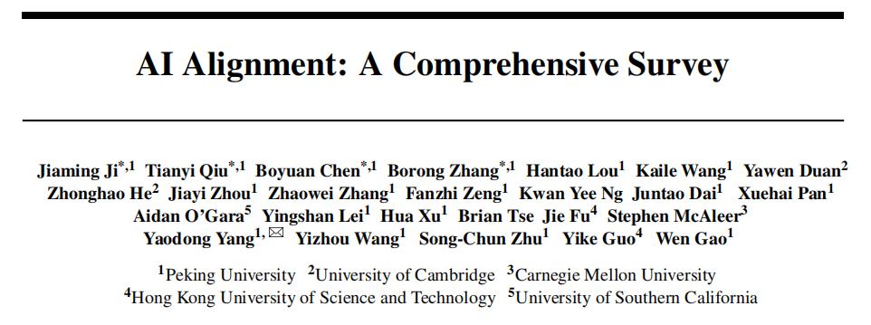 近日,来自北京大学、剑桥大学、卡内基梅隆大学、香港科技大学和南加利福尼亚大学的研究团队,联合发布了一篇调查论文,深入探讨了“AI 对齐”的核心概念、目标、方法和实践。