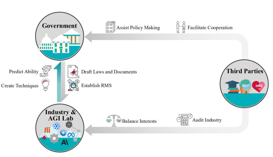 AI 治理需要多方利益相关者参与,包括政府法规、实验室的自我治理以及审计等第三方实践。另外,AI 治理还应关注一些开放性问题,包括开源治理的紧迫挑战(开源模型的治理以及是否将高度能力模型开源的问题),以及国际协调在 AI 治理中的重要性。除了政策研究,公共部门和私营部门也应采取关键行动。