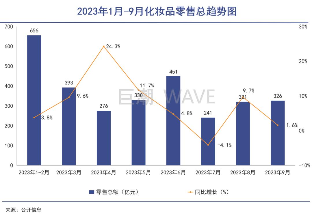 纵观今年1-9月的化妆品零售数据不难看出,今年国内化妆品波动明显,7月甚至还出现了负增长。